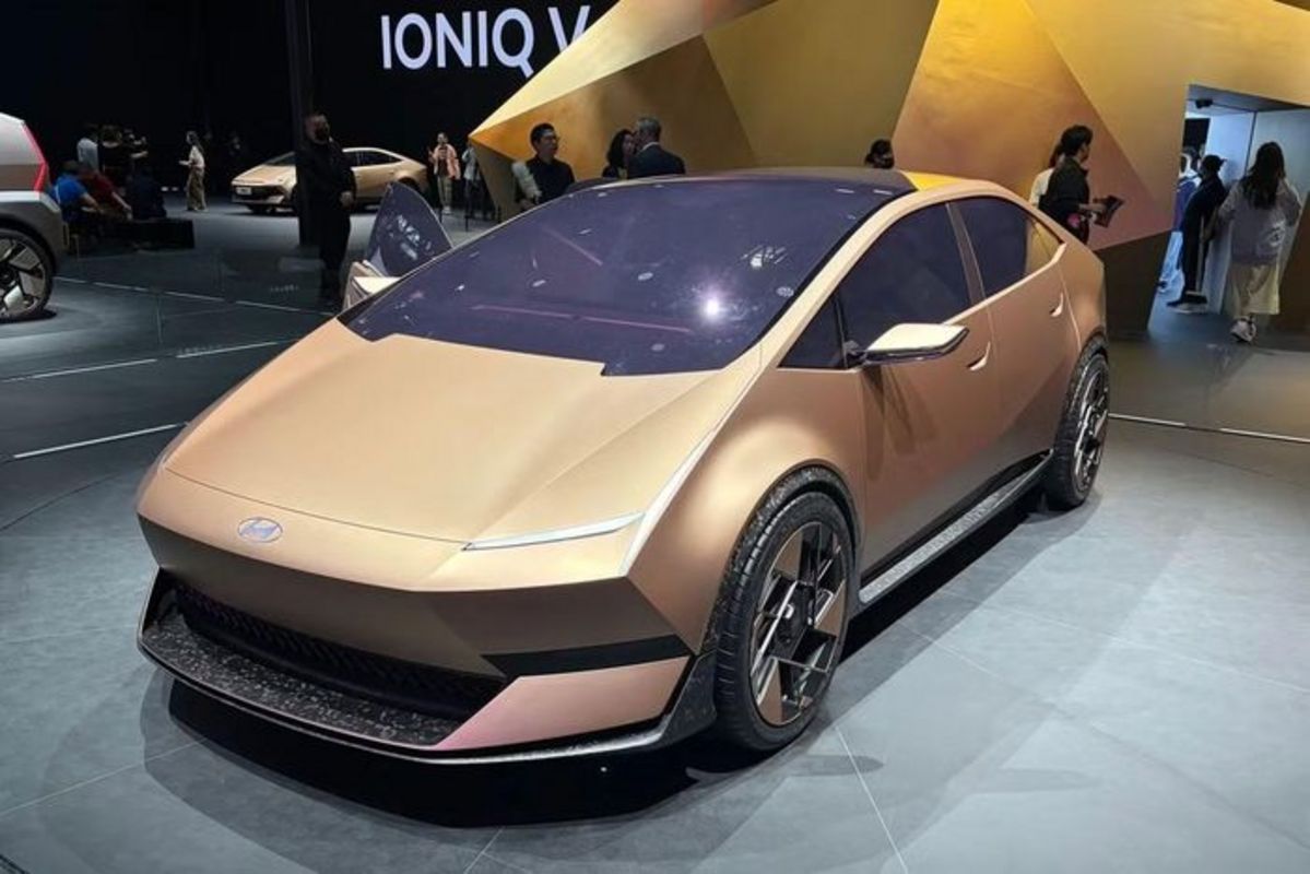 Khác biệt hoàn toàn so với các mẫu Ioniq SUV đang được phân phối trên toàn cầu, Ioniq V là một mẫu sedan thuần điện với kiểu dáng khí động học nổi bật. Xe sở hữu phần đầu xe thấp và thân xe góc cạnh, tạo nên một vẻ ngoài hiện đại và thể thao.
