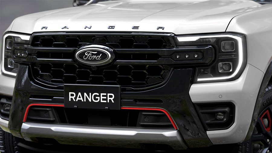 Nắp ca-pô được gắn thêm dòng chữ “Ranger” màu tương phản, kết hợp với cản trước thanh chữ H đen bóng viền đỏ và bộ vành 20 inch, tăng độ nhận diện và sự cá tính của chiếc xe.