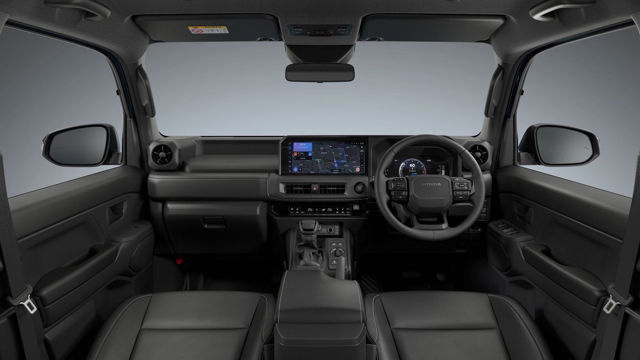Bên trong khoang cabin, nội thất của Land Cruiser FJ tiếp tục thể hiện phong cách góc cạnh và mạnh mẽ, tương đồng với các mẫu xe đình đám khác của Toyota như Land Cruiser Prado hay thế hệ mới của Hilux. Xe được trang bị vô-lăng ba chấu thể thao, cùng bảng điều khiển trung tâm được thiết kế nổi bật với một màn hình kỹ thuật số kích thước 12,3 inch. Ngoài ra, phía sau tay lái còn có một màn hình hiển thị thông tin hỗ trợ người lái. Các phím điều khiển dành cho hệ thống điều hòa nhiệt độ được thiết kế dạng điện tử hiện đại, mang lại trải nghiệm tiện nghi và dễ dàng thao tác.