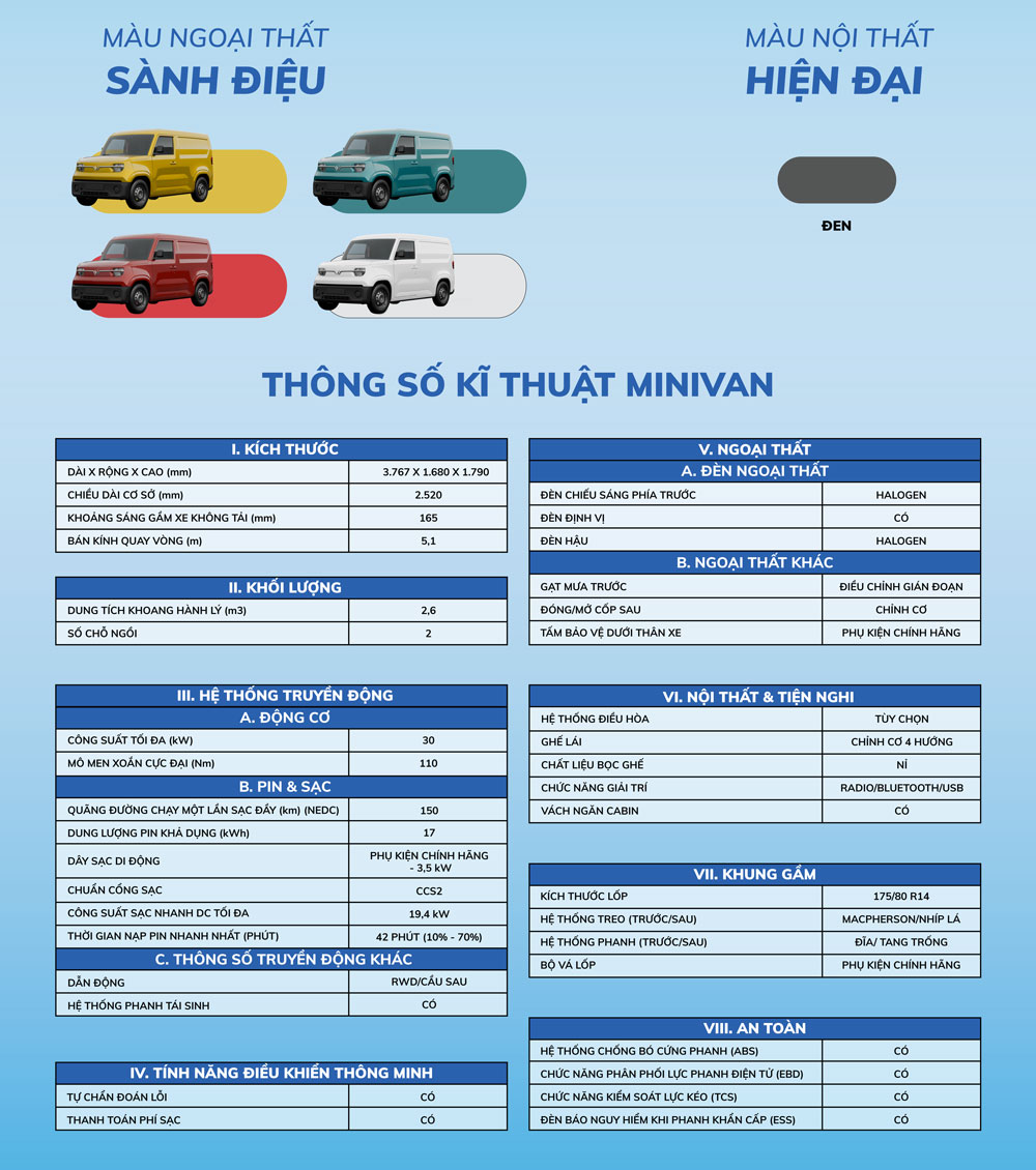 Thông số kỹ thuật VinFast EC Van chi tiết
