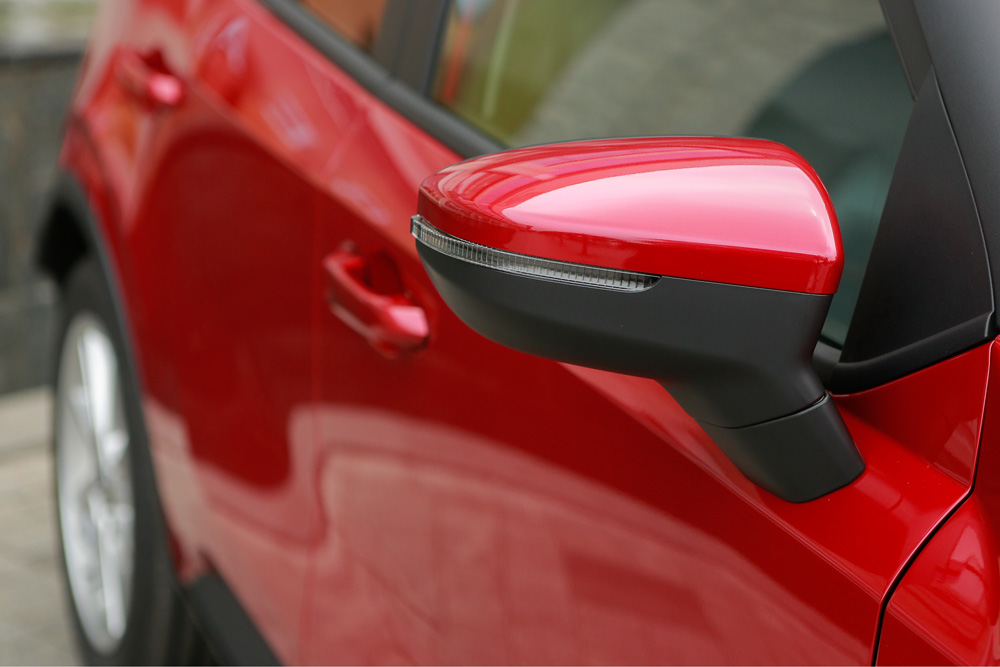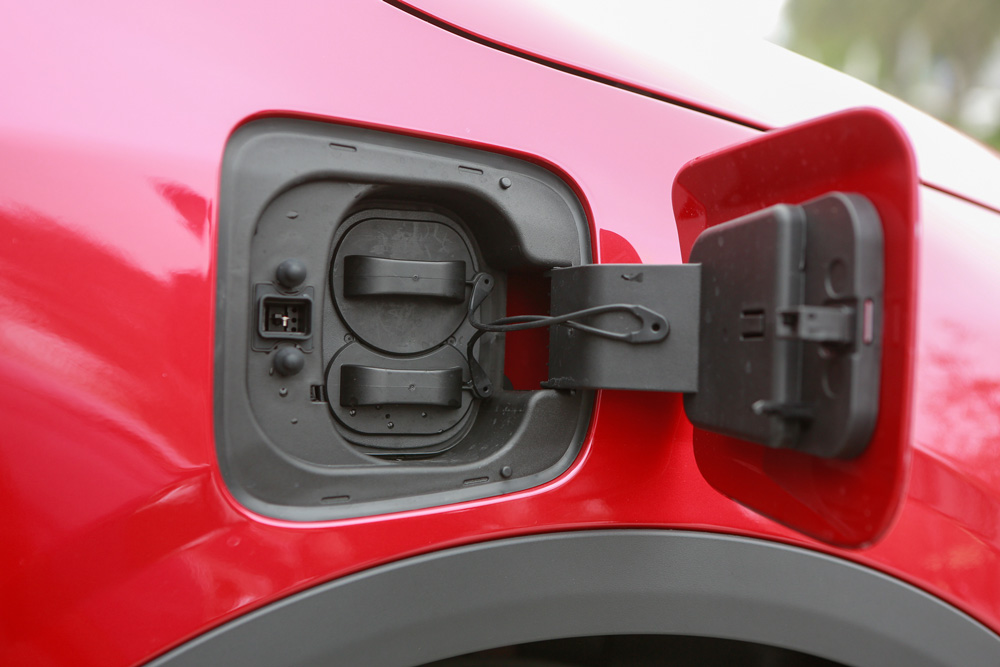 Tay nắm cửa được sơn cùng màu thân xe, trong khi gương chiếu hậu hai tông màu tích hợp tính năng chỉnh điện, đèn báo rẽ và cảnh báo điểm mù, nâng cao sự an toàn khi di chuyển. Cổng sạc được bố trí thuận tiện ở hông phải, giúp quá trình sạc pin dễ dàng hơn.