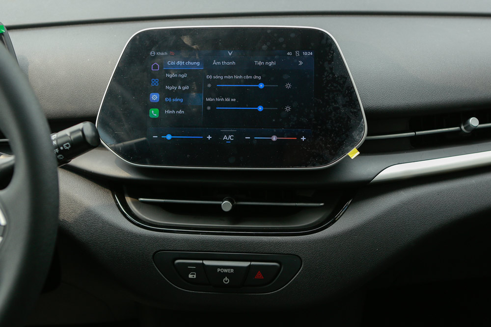 Trung tâm cabin là màn hình cảm ứng 8 inch nổi bật, hỗ trợ điều khiển bằng giọng nói thông qua trợ lý ảo. Hệ thống âm thanh 4 loa chất lượng cao mang đến trải nghiệm giải trí sống động. Tuy nhiên, màn hình này chưa hỗ trợ kết nối Apple CarPlay hay Android Auto. Xe được trang bị điều hòa chỉnh cơ 1 vùng, tích hợp tính năng lọc bụi mịn PM2.5, đảm bảo không khí trong lành cho hành khách. Cửa gió được thiết kế ngang tinh tế, tạo cảm giác liền mạch cho bảng điều khiển. Núm xoay chuyển số đơn giản, tiện dụng, không có chế độ P; người lái chỉ cần đưa về N và kéo phanh tay khi đỗ xe.