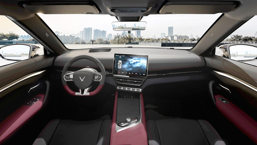 Ghế ngồi được bọc hai tông màu nổi bật, kèm theo tựa đầu có thể điều chỉnh linh hoạt, mang lại sự thoải mái tối đa cho mọi hành khách. Đặc biệt, cửa sổ trời toàn cảnh mở rộng gần như toàn bộ khoang hành khách, tạo cảm giác rộng rãi và thoáng đãng. Tất cả những chi tiết này đều được chăm chút tỉ mỉ, phản ánh dấu ấn cá nhân và gu thẩm mỹ của chủ nhân, biến mỗi hành trình cùng VF 7 thành một cuộc phiêu lưu độc đáo và tràn đầy cảm hứng trong không gian riêng tư, đẳng cấp.