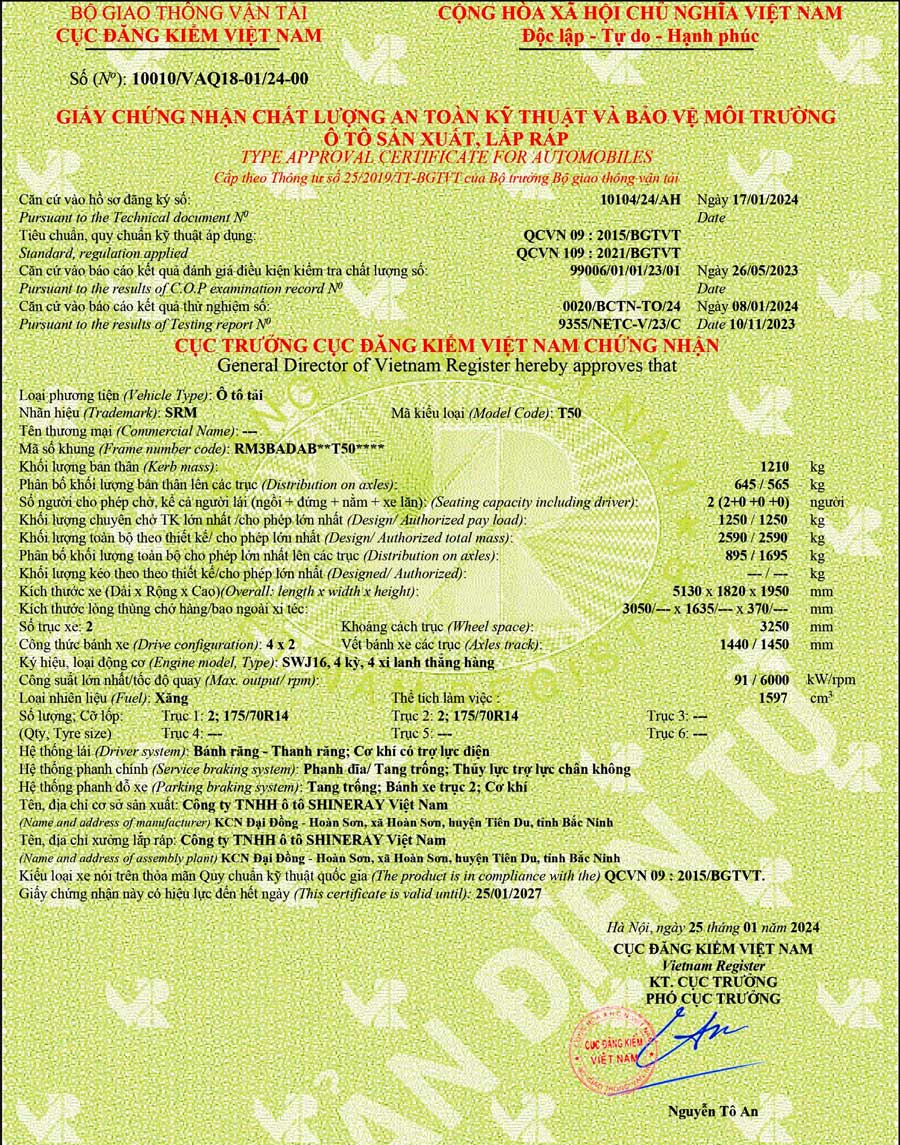 Với chế độ bảo hành 5 năm hoặc 150.000 km, Shineray Motor cam kết mang đến cho khách hàng sự yên tâm khi sử dụng SRM T50.