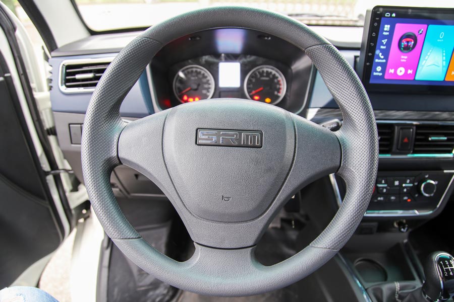 Cabin của SRM T50 được trang bị ghế da nhập khẩu, màn hình Android tích hợp camera lùi, tay lái trợ lực, kính điện, khóa điện và điều hòa hai chiều.